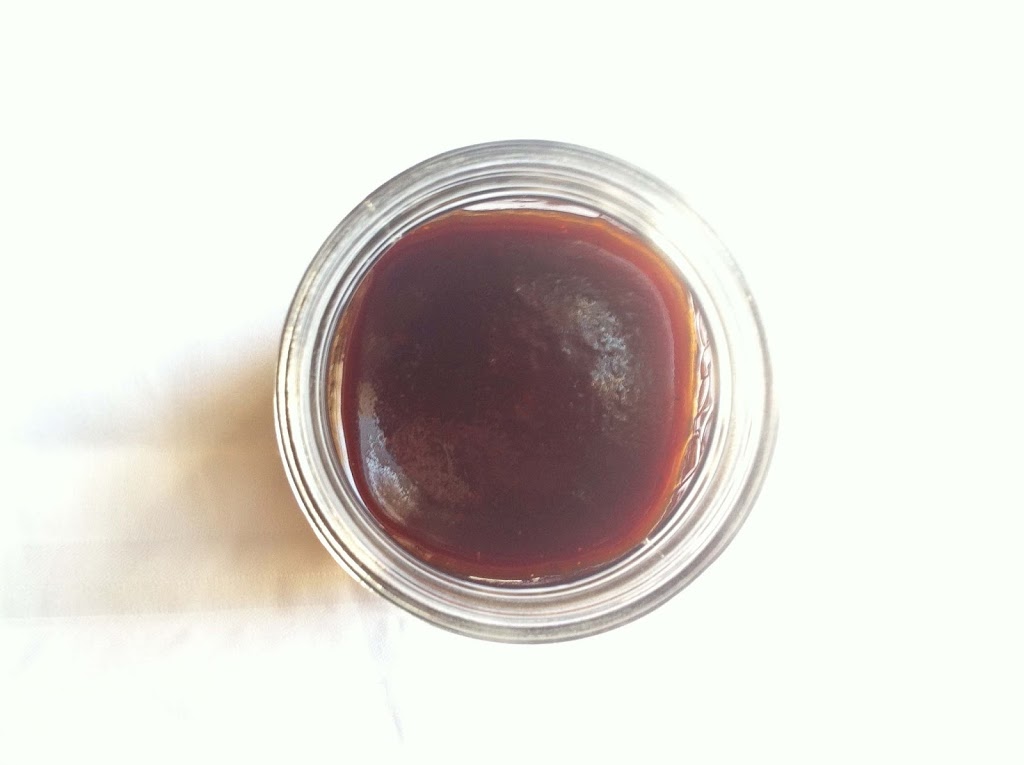 I then transferred 1/2 a cup barbecue sauce to a small bowl for brushing on the ribs and placed the rest of the barbecue sauce into a mason jar.