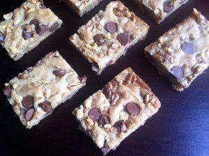 I used a Blondie recipe from Martha Stewart. It turned out great and was a nice way to finish the meal. You can take these bars to the next level by serving them up with a scoop of vanilla ice cream and a drizzle of caramel sauce.